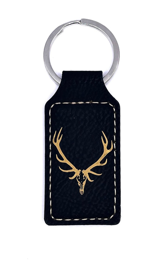 Bull Elk Skull, Leather Style Engraved Keyring