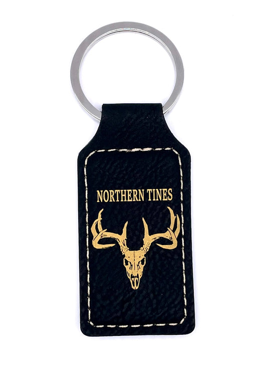 Buck Skull, Leather Style Engraved Keyring